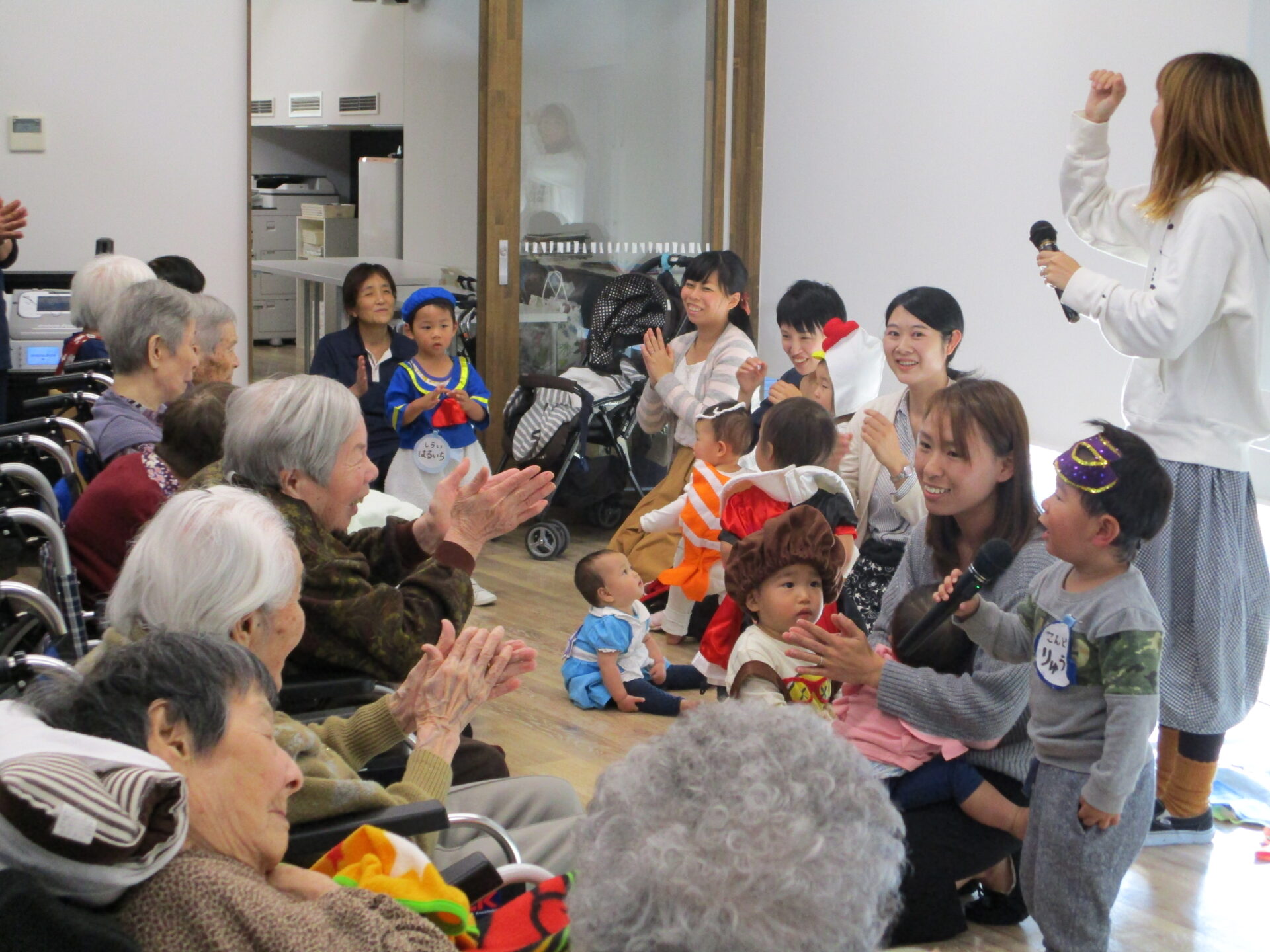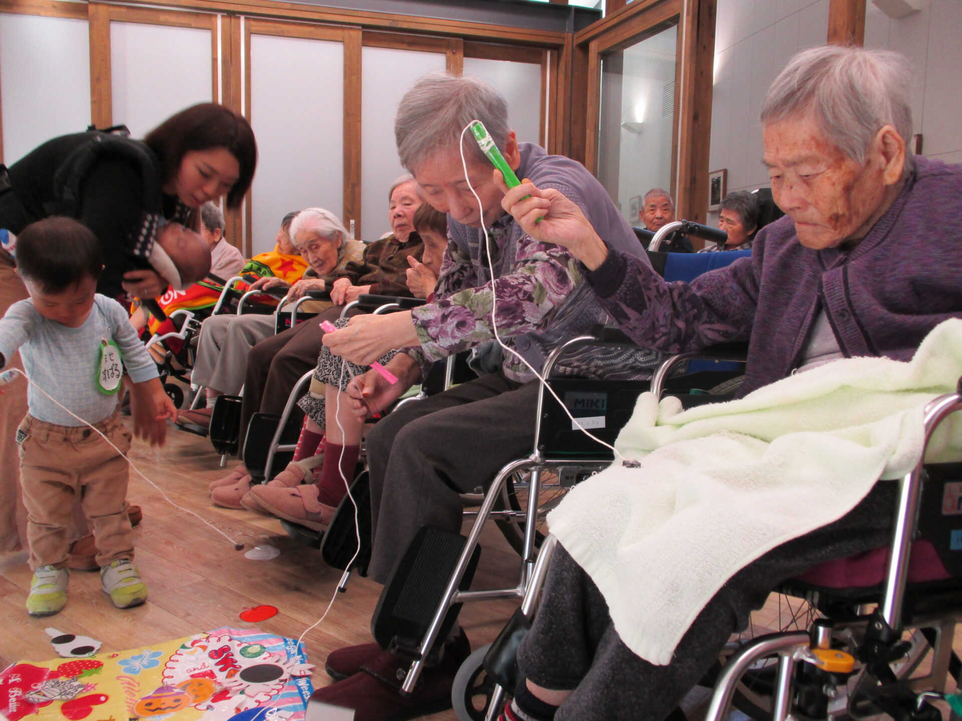 11月10日午後、0歳児から未収園児の子供たちと、ご利用者さまの交流会「年の差サロン」を開催しました。