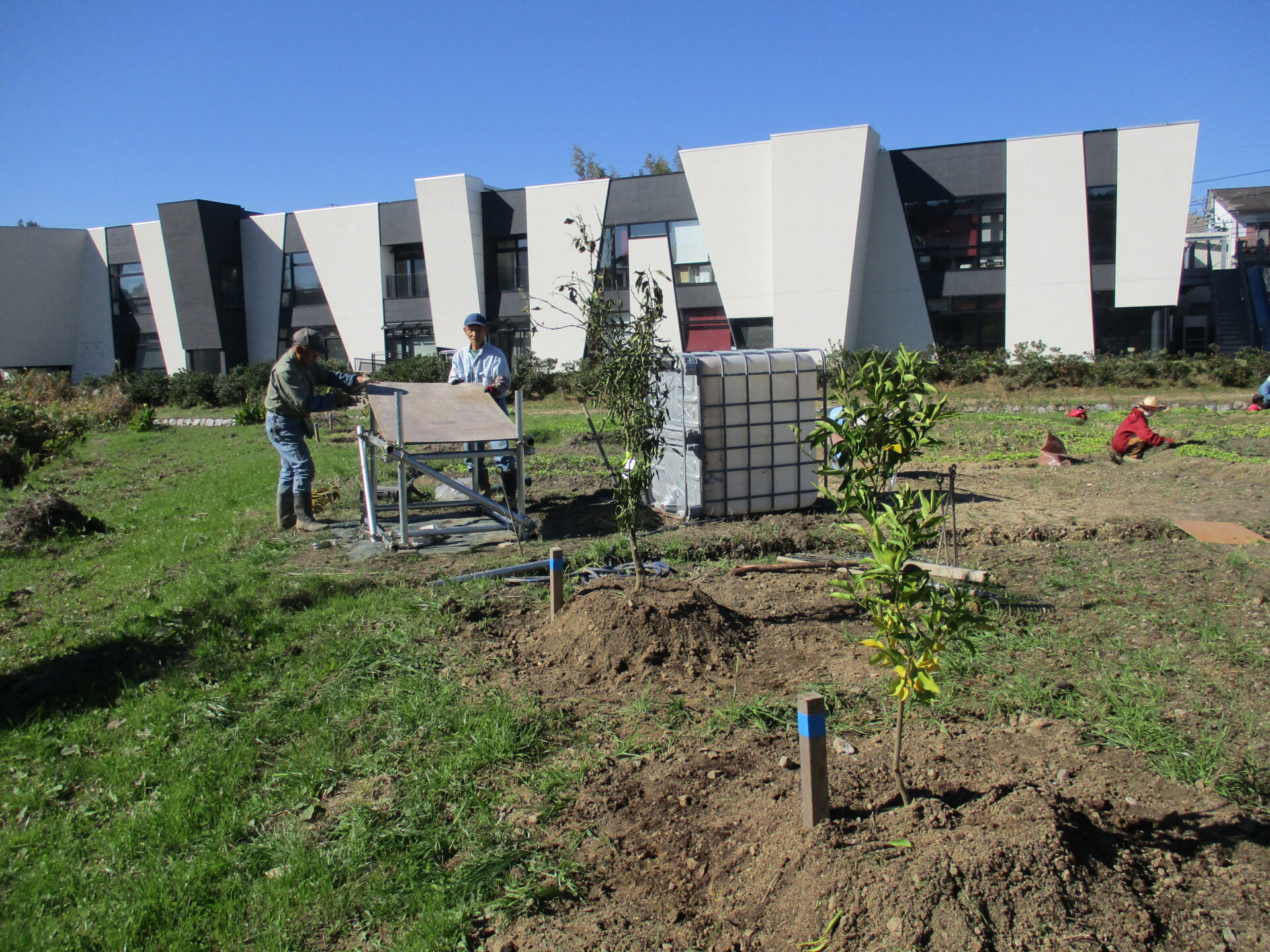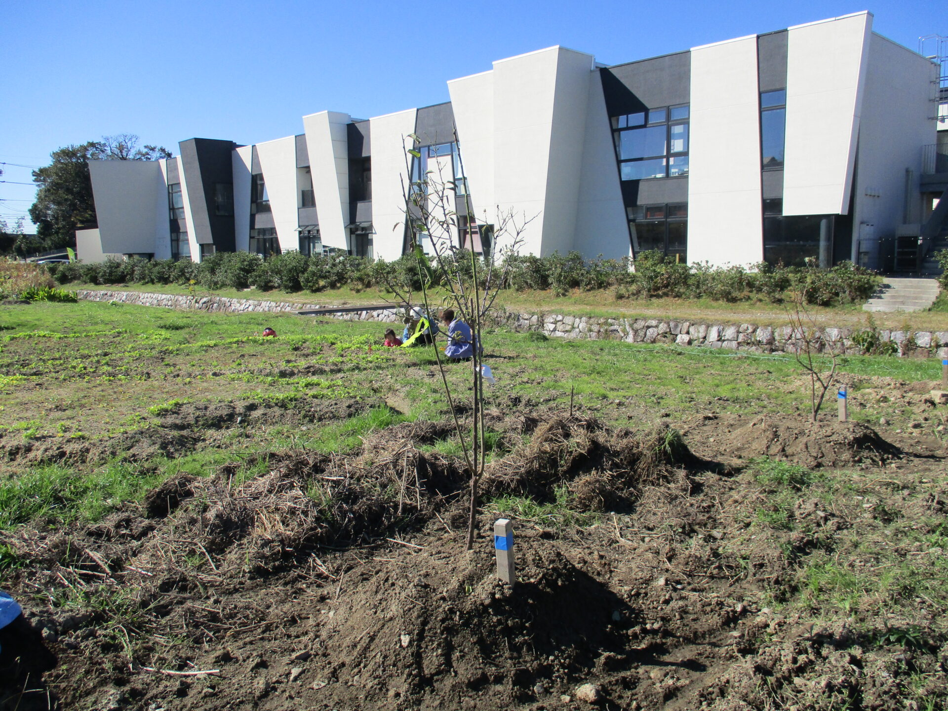 11/15 施設から眺められるお庭に果樹を5本を植えつけました。