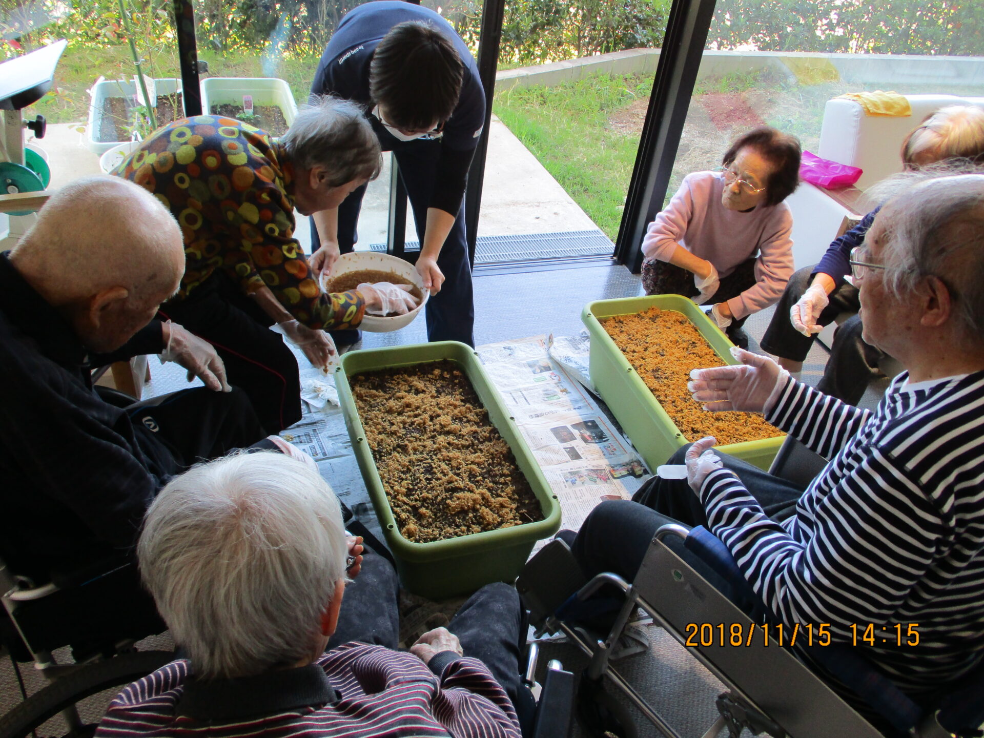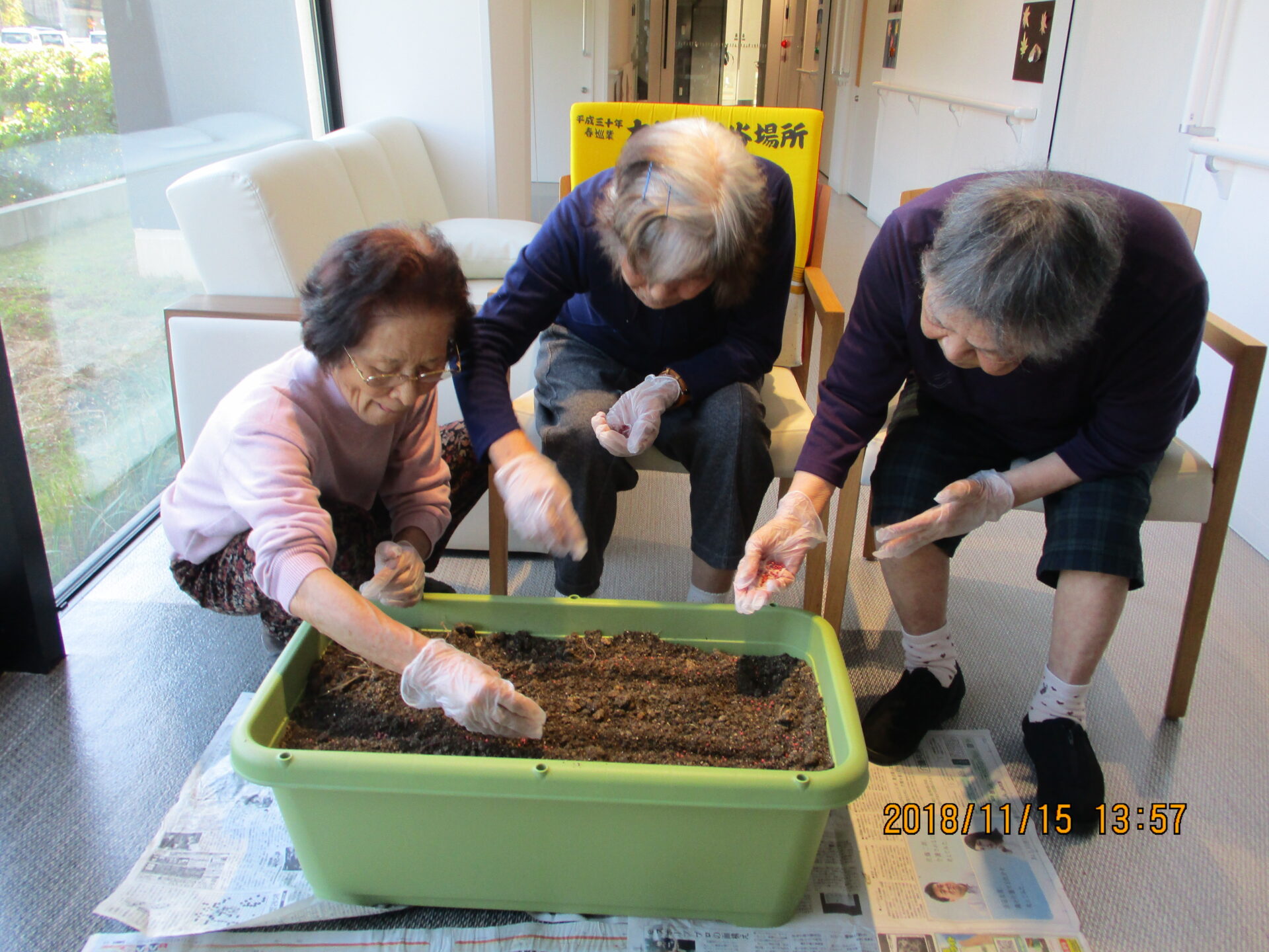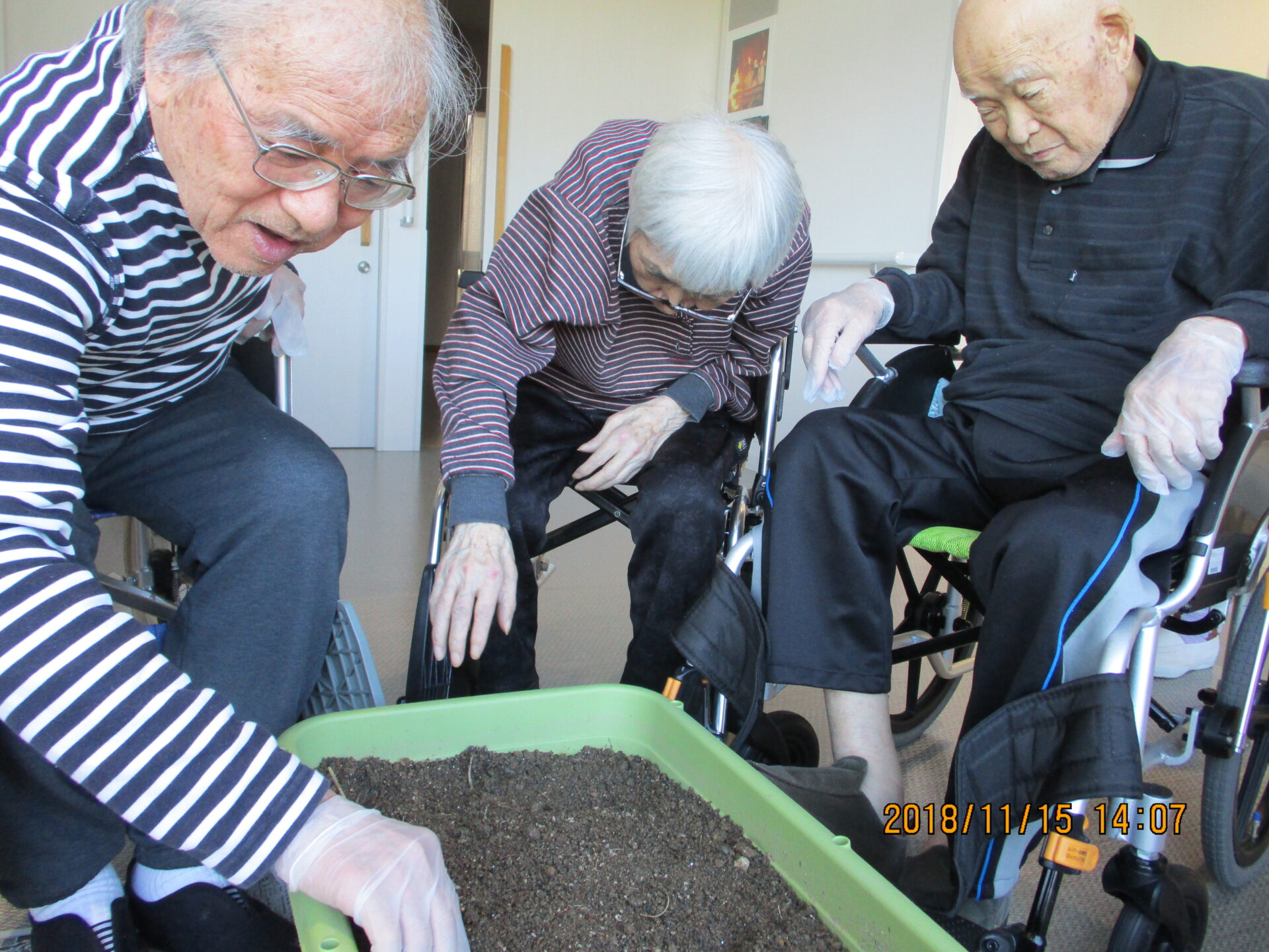 11月15日短期入所ユニットで、「人参・大根・ほうれん草」の種まきをしました。
