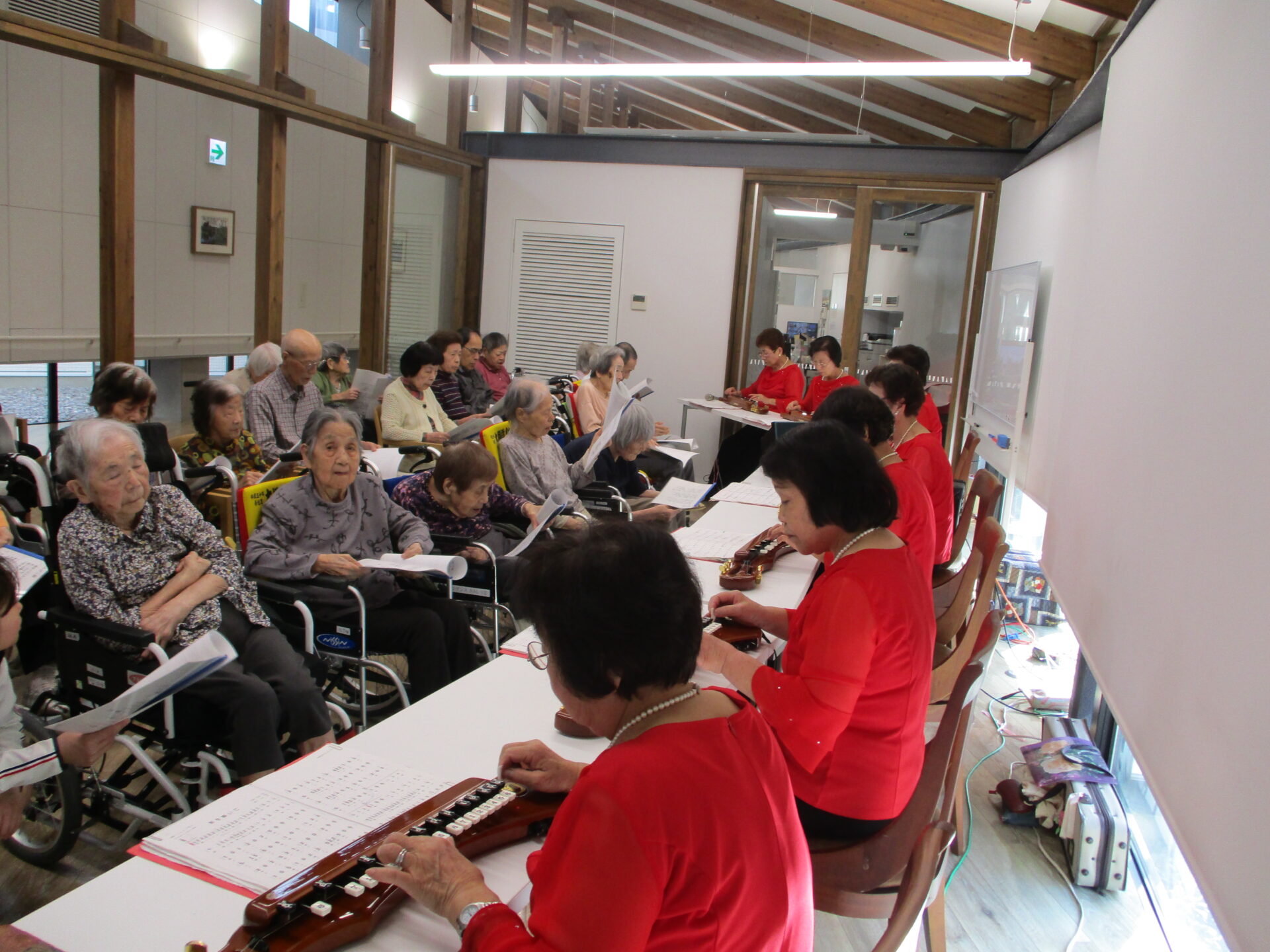 きれいな大正琴の音色と、ご利用者さまの歌声が響き渡ります。