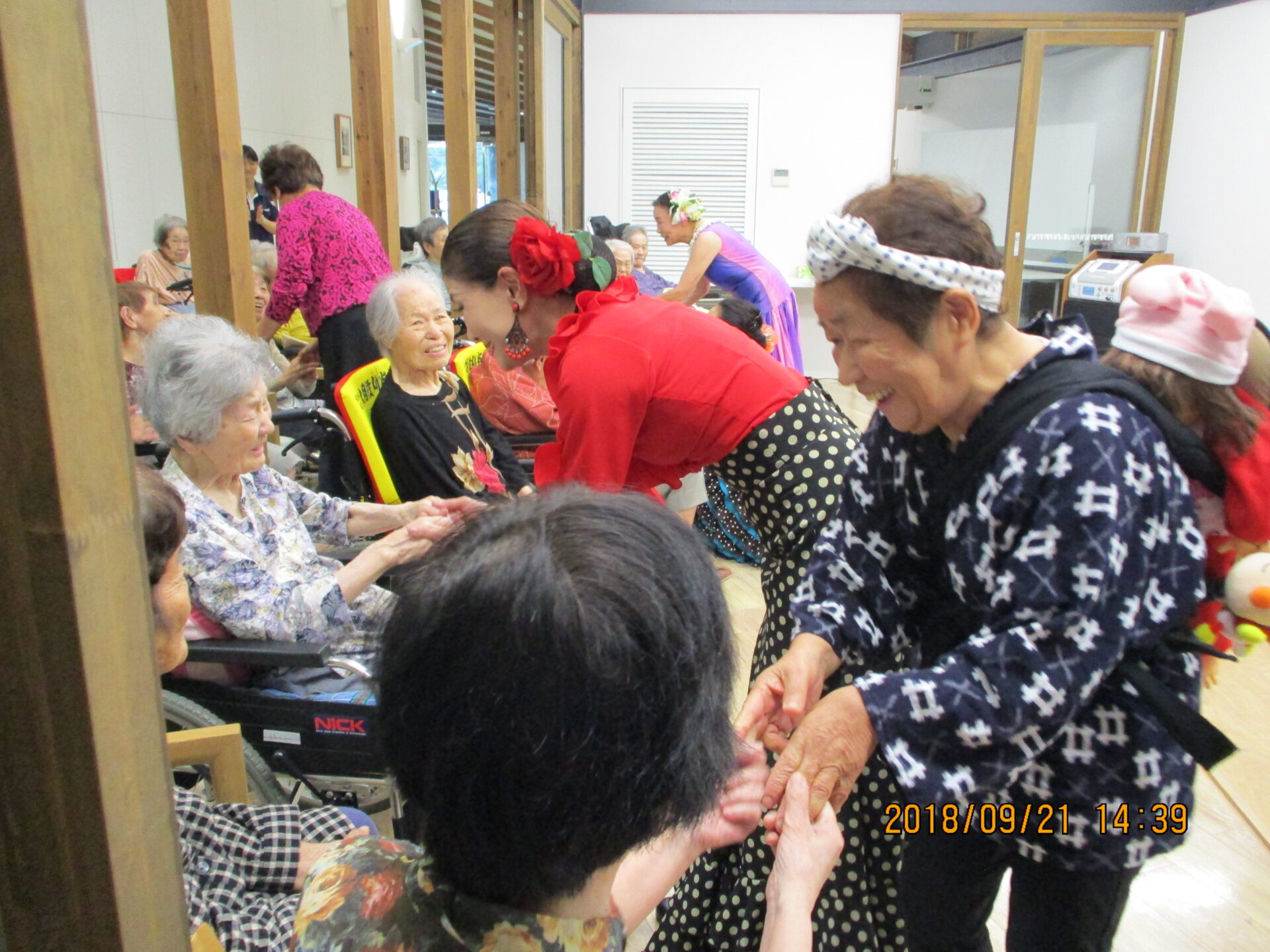 ステキな衣装でのフラメンコ・フラダンス、ユニークな衣装を着てのどじょうすくいの鑑賞、カラオケで歌を一緒に歌ったりと楽しい時間になりました。