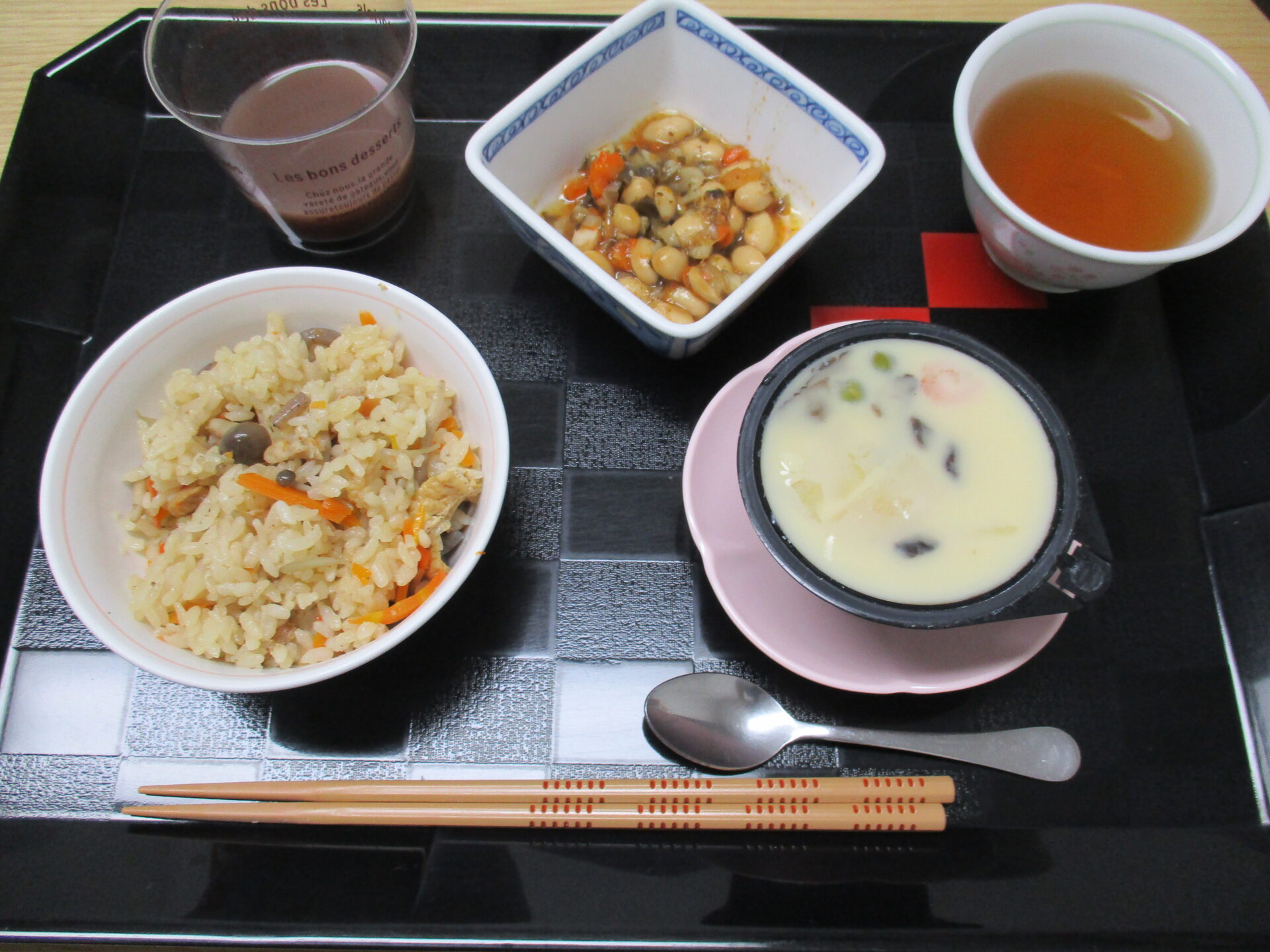 9月27日、「秋の味覚パーティ」と題して味ご飯を皆さんと調理し、ご家族様と一緒に昼食会を開催しました。味ご飯の中身は、皆さんに決めていただきました。