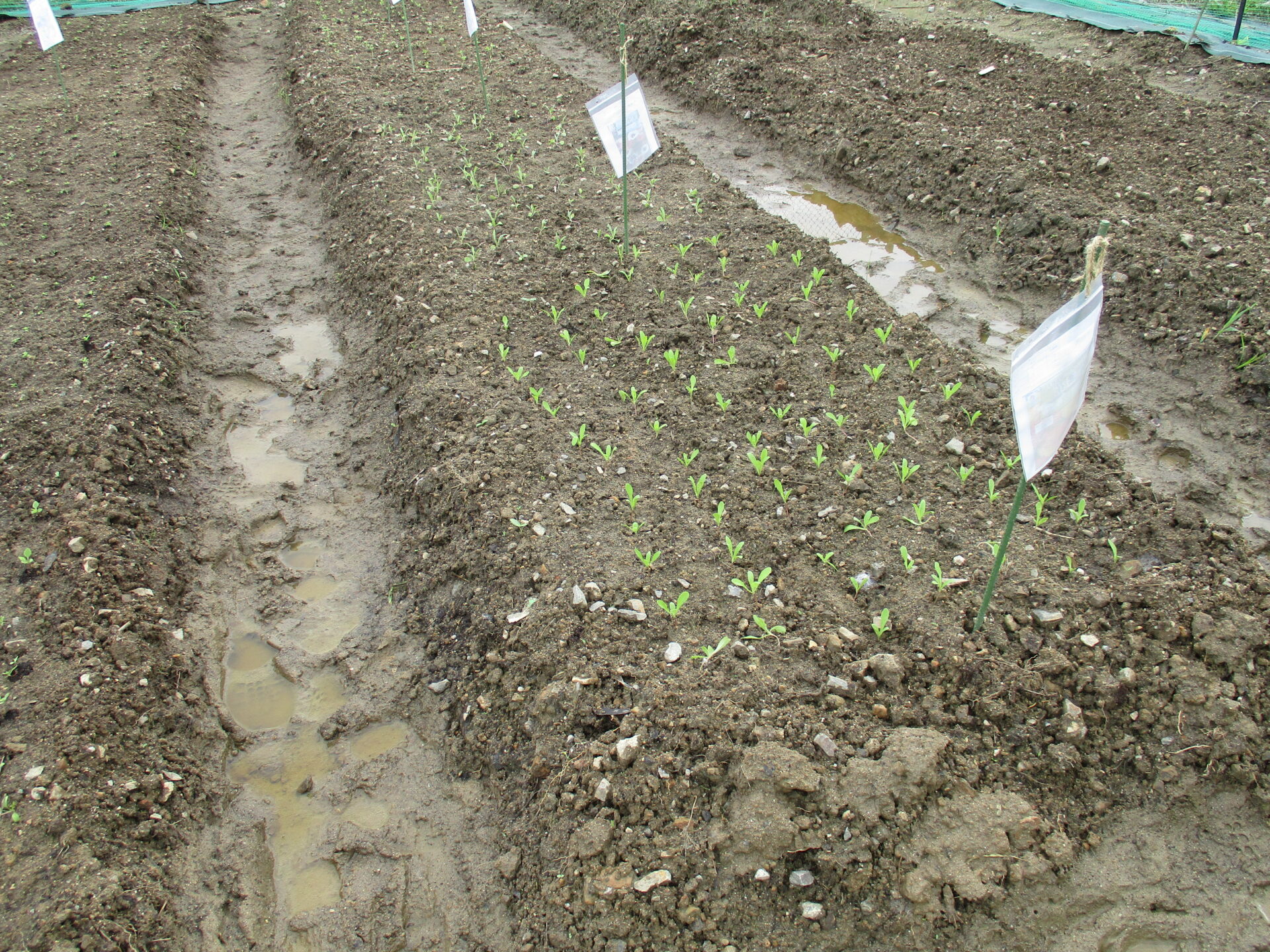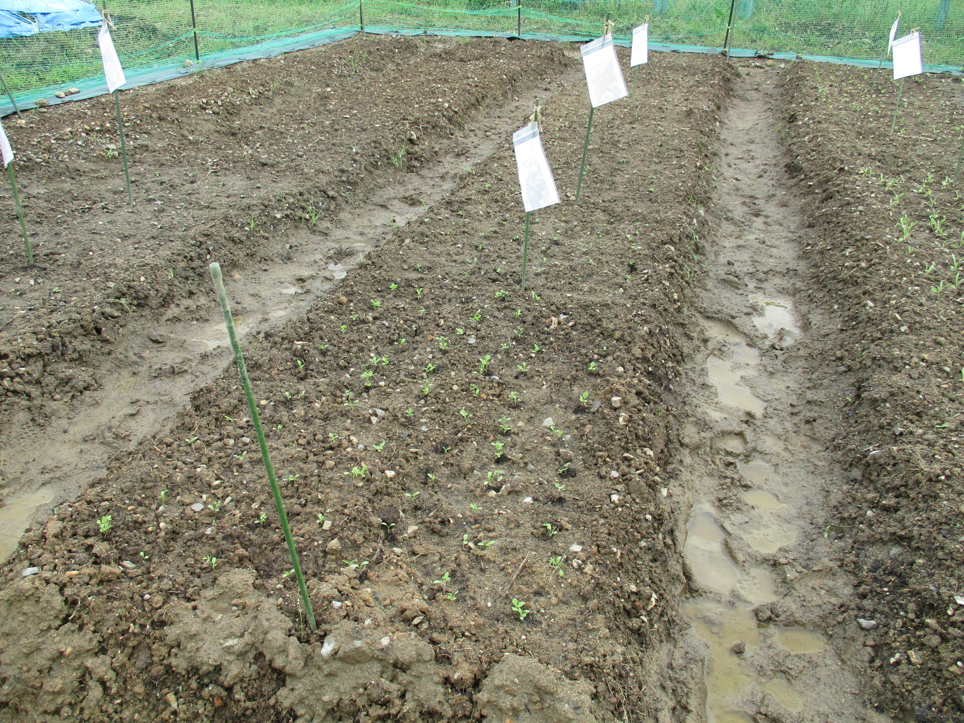 まだまだ小さな苗ですが、EMひろばのみなさんが、畑に仮植えしてくださいました。