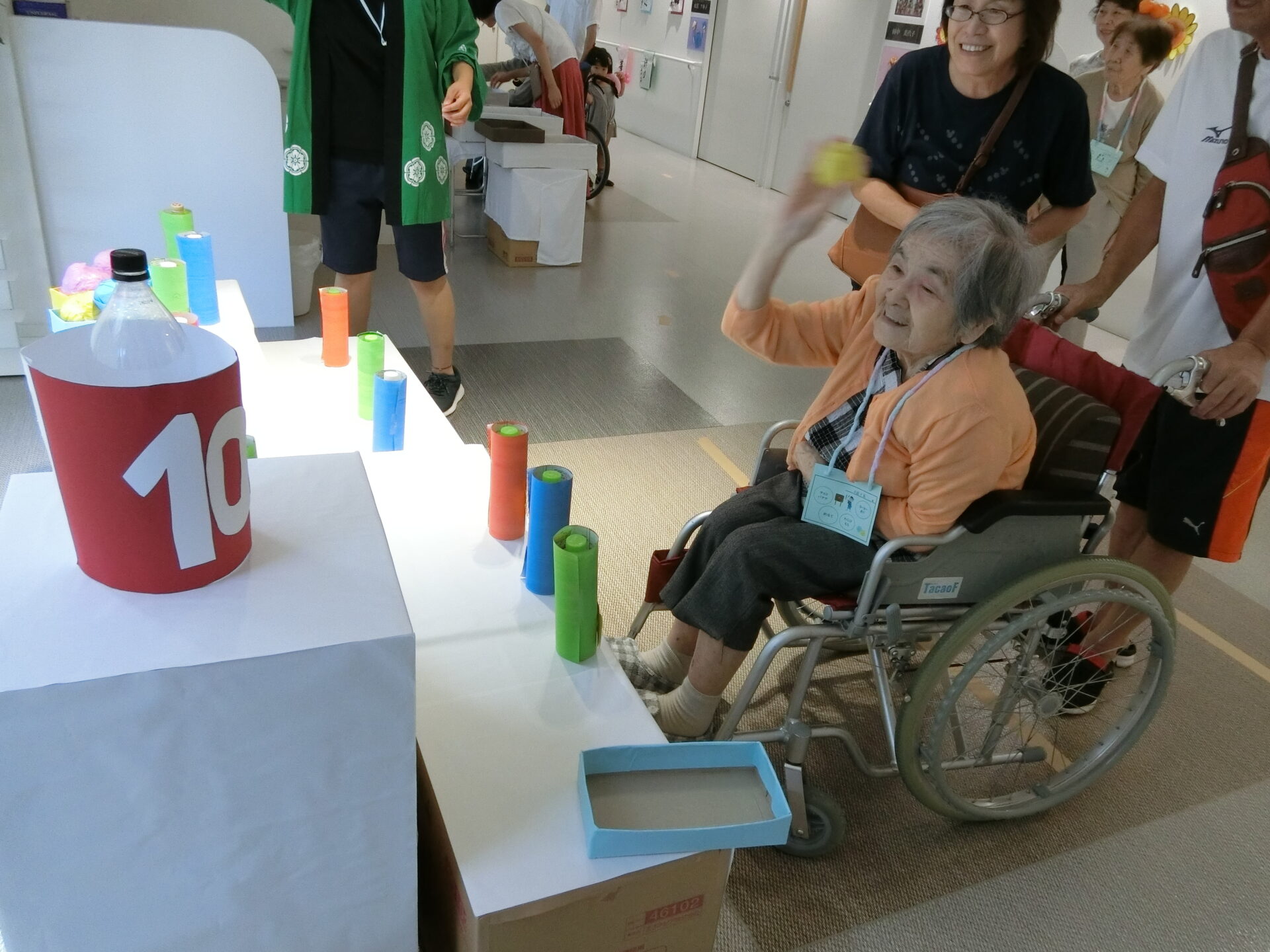 ご家族様や職員、ボランティアの方と一緒に的あて、ヨーヨー釣りをたのしみました。地域の方やお子様も遊びにきてくれました。