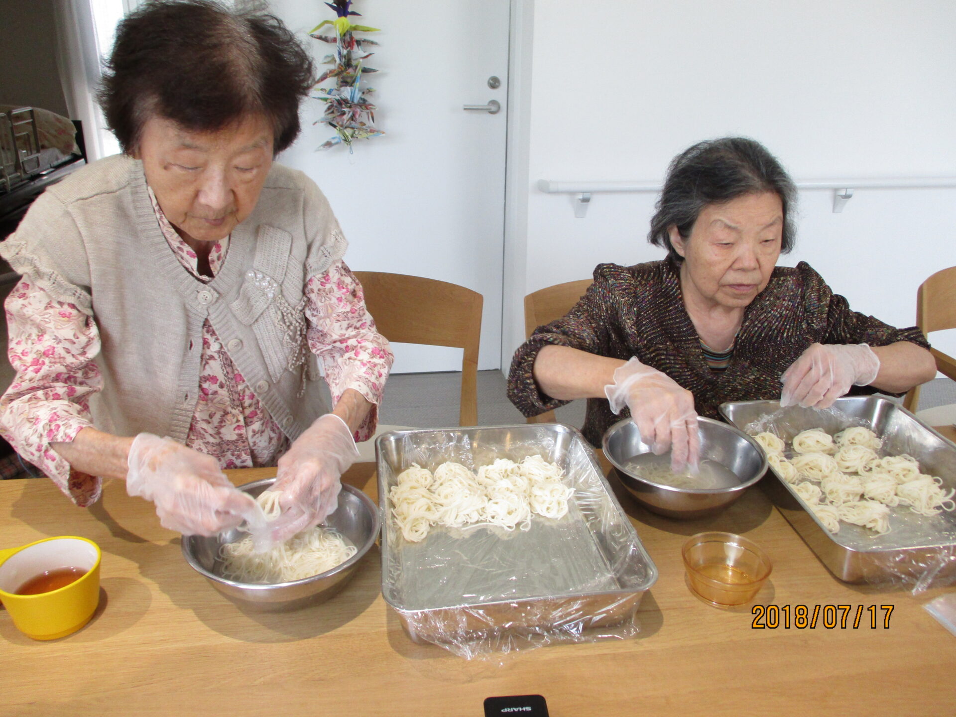 茹でたそうめんを一口サイズに丸めて…準備も手際よくすすめていただきました。