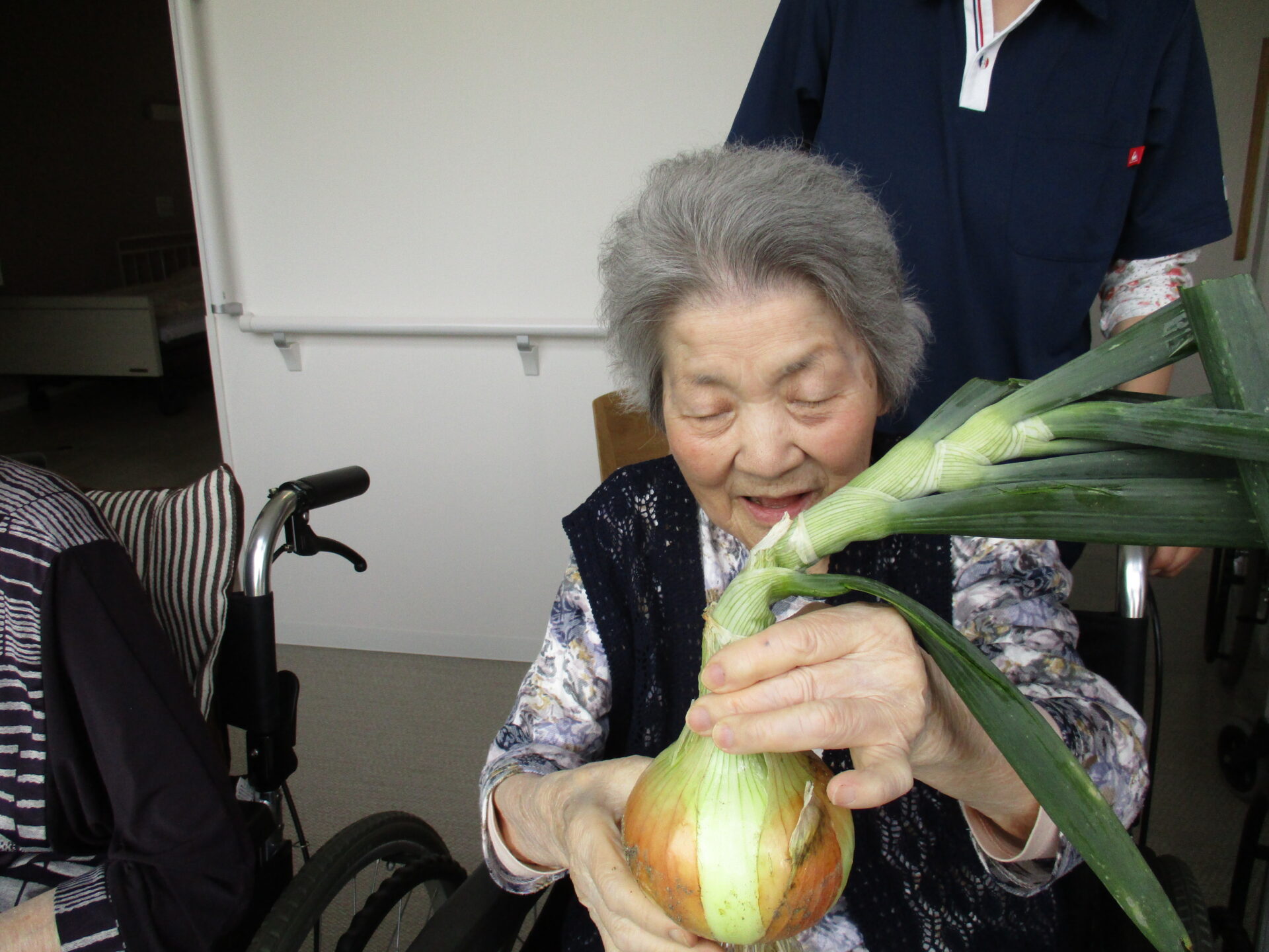 施設で収穫した新たまねぎを使って手作りハンバーグを作ります。