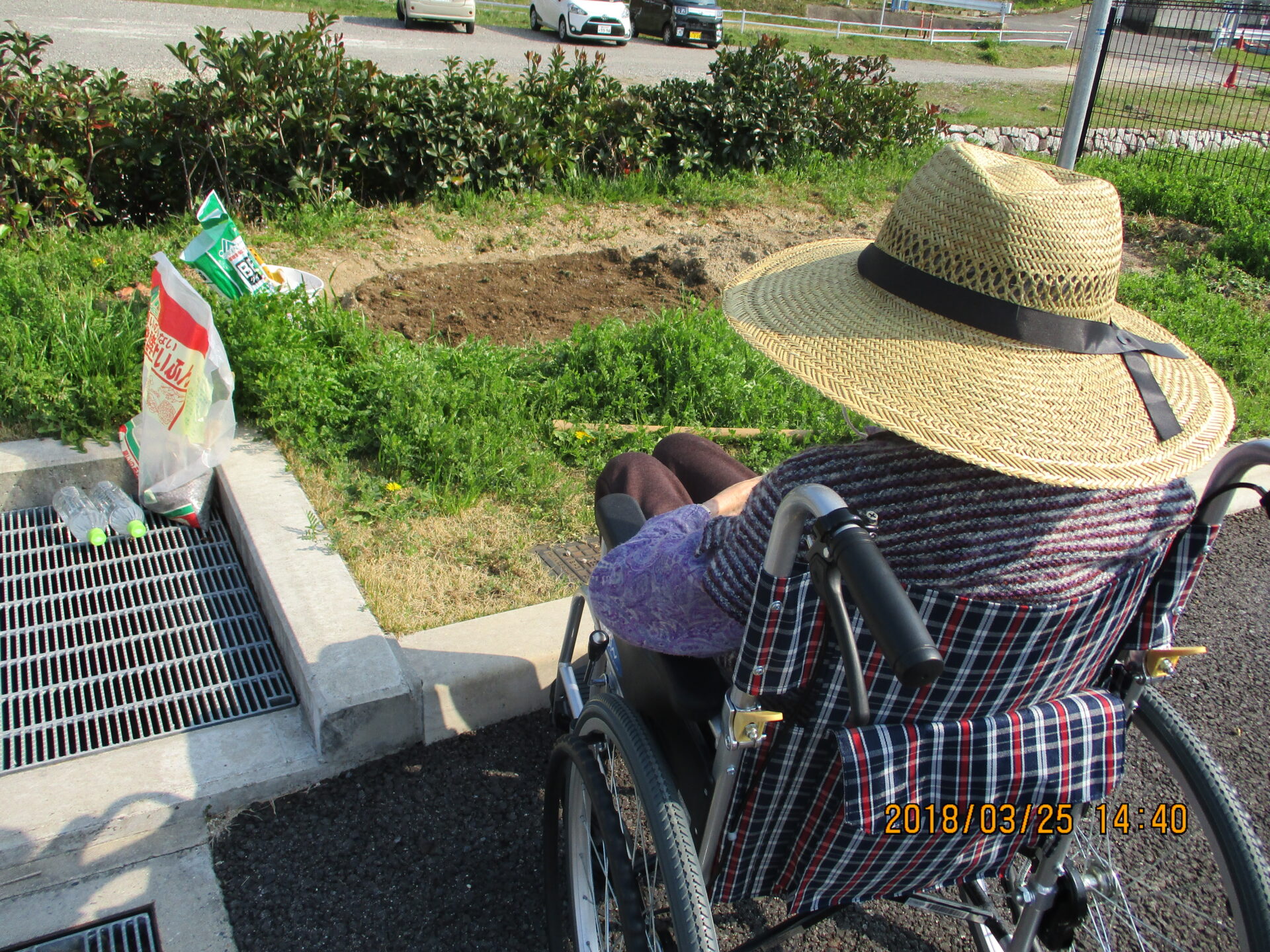 たくさん種芋ができたので、駐車場の畑にも植えました。