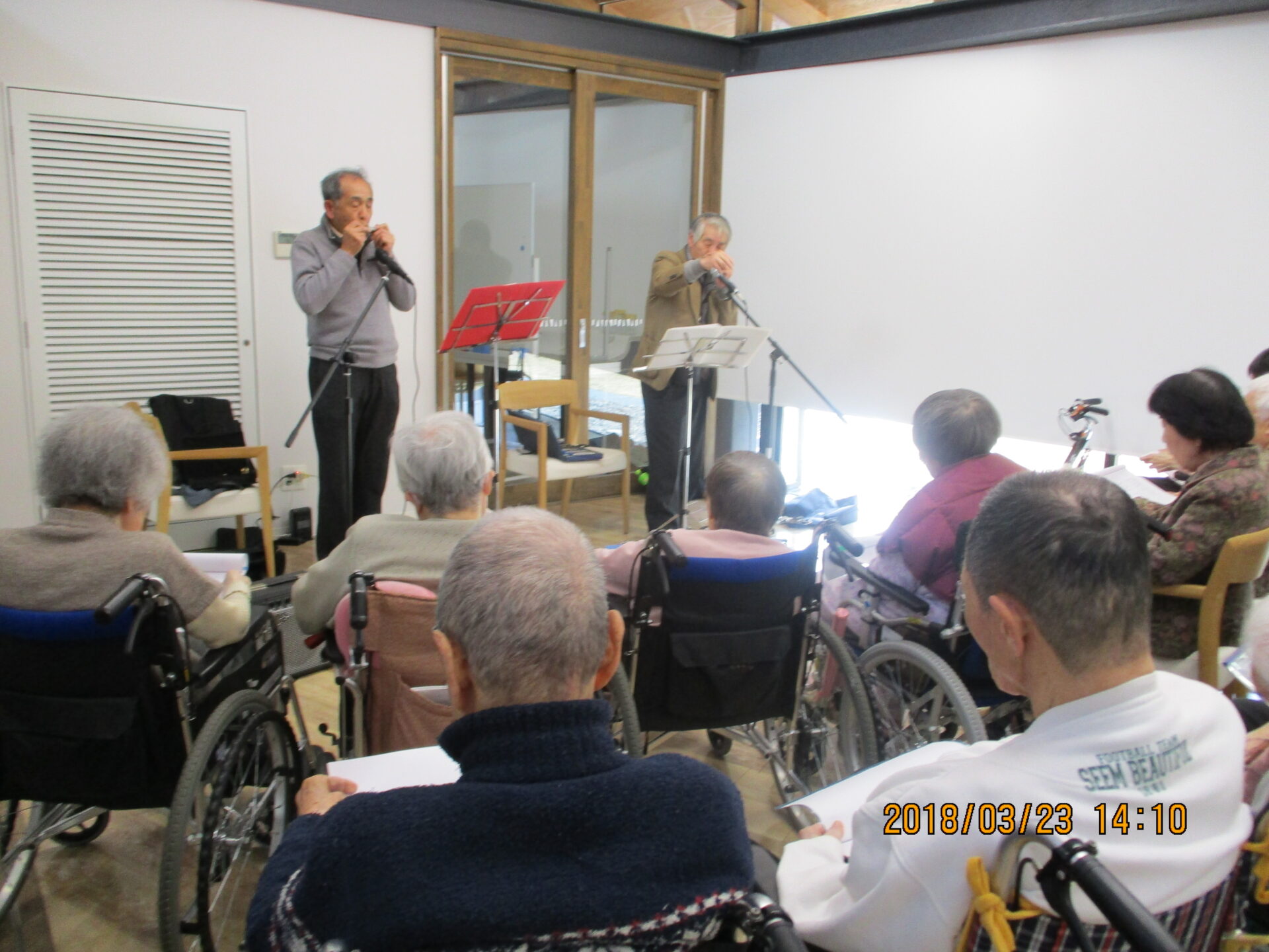 3月23日(金)「岸辺のかえる」の方々がハーモニカ演奏に来ていただきました。