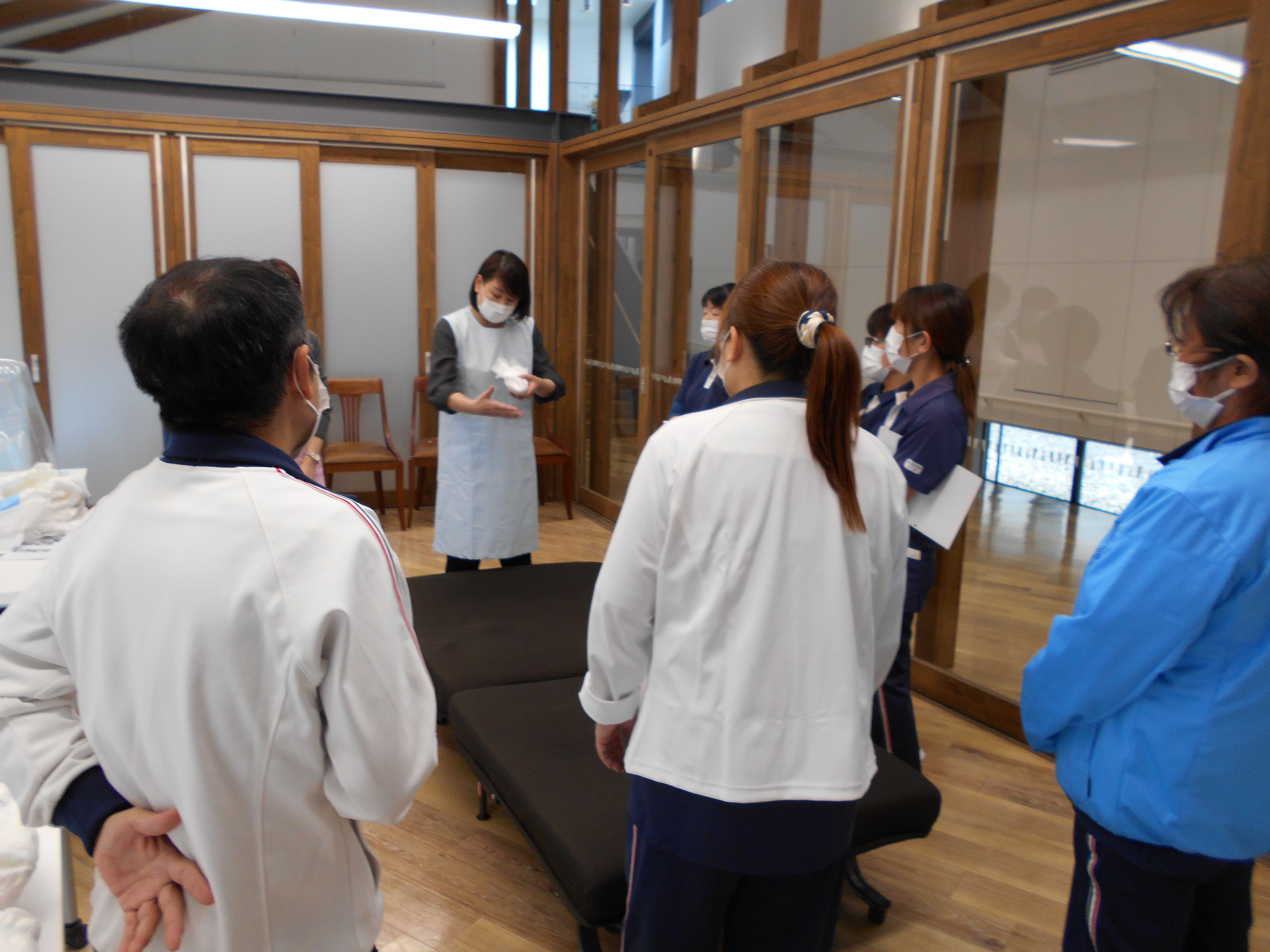 つけ方のポイントは3つあり、職員は真剣に耳を傾けていました。