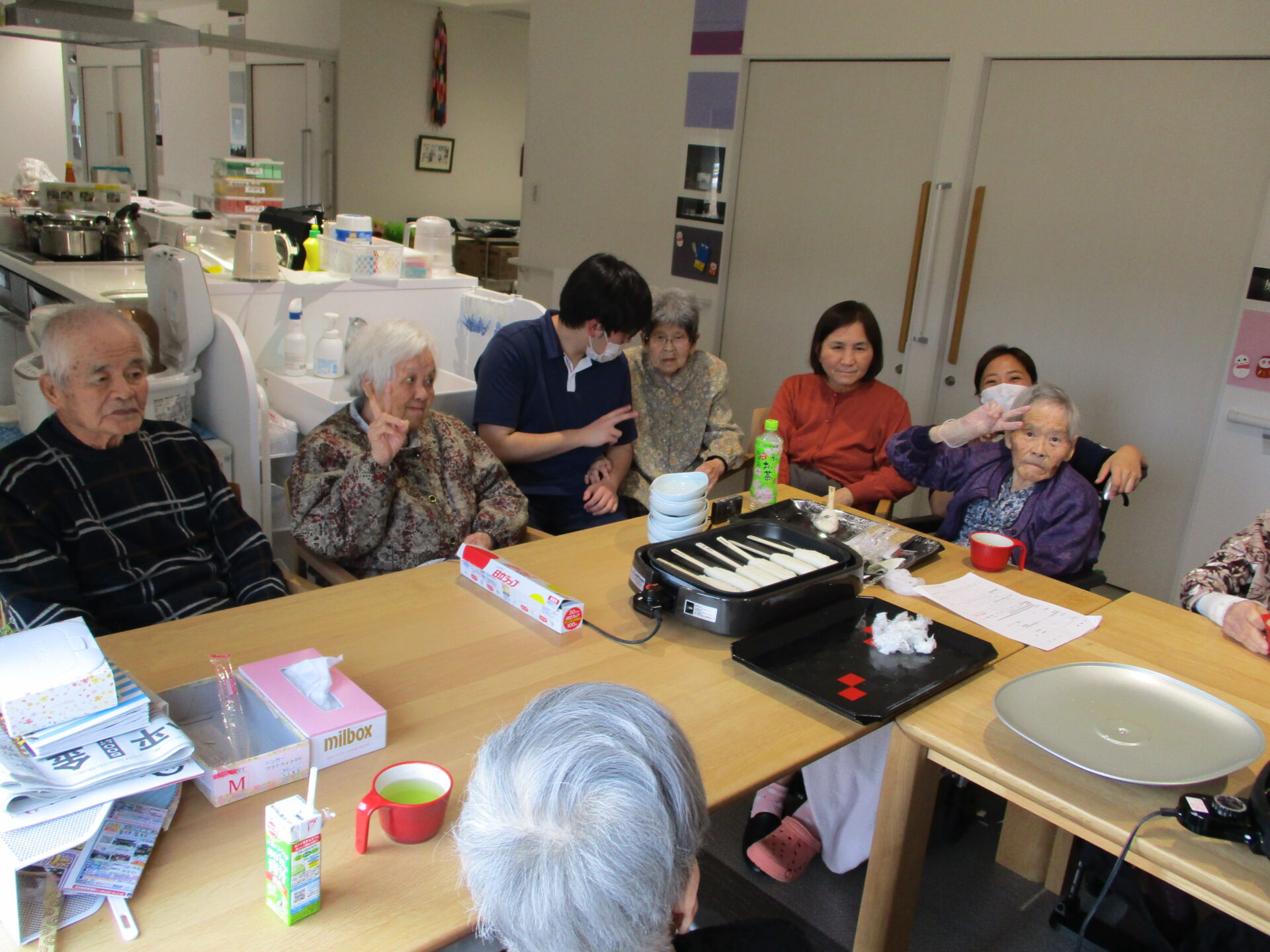 御飯を炊いて、ラップに包んだ御飯を手でもんで潰してもらいます。