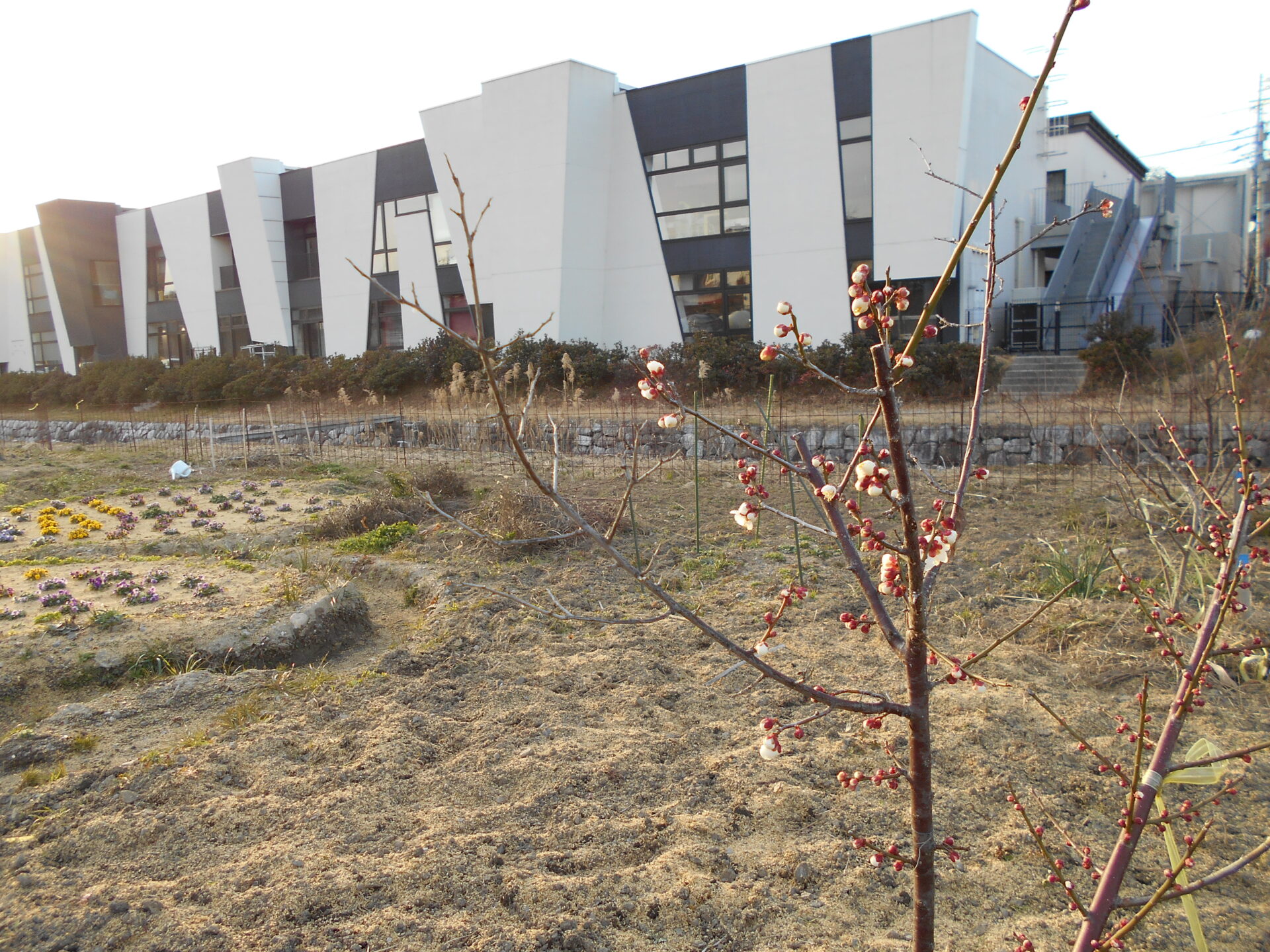 2/3(月) 施設のリビングから眺められる場所に『源平桃』を植えました。