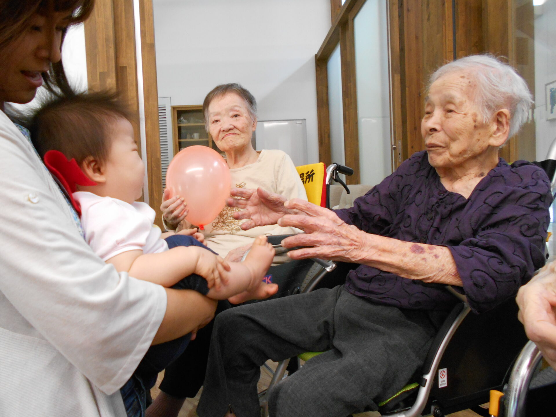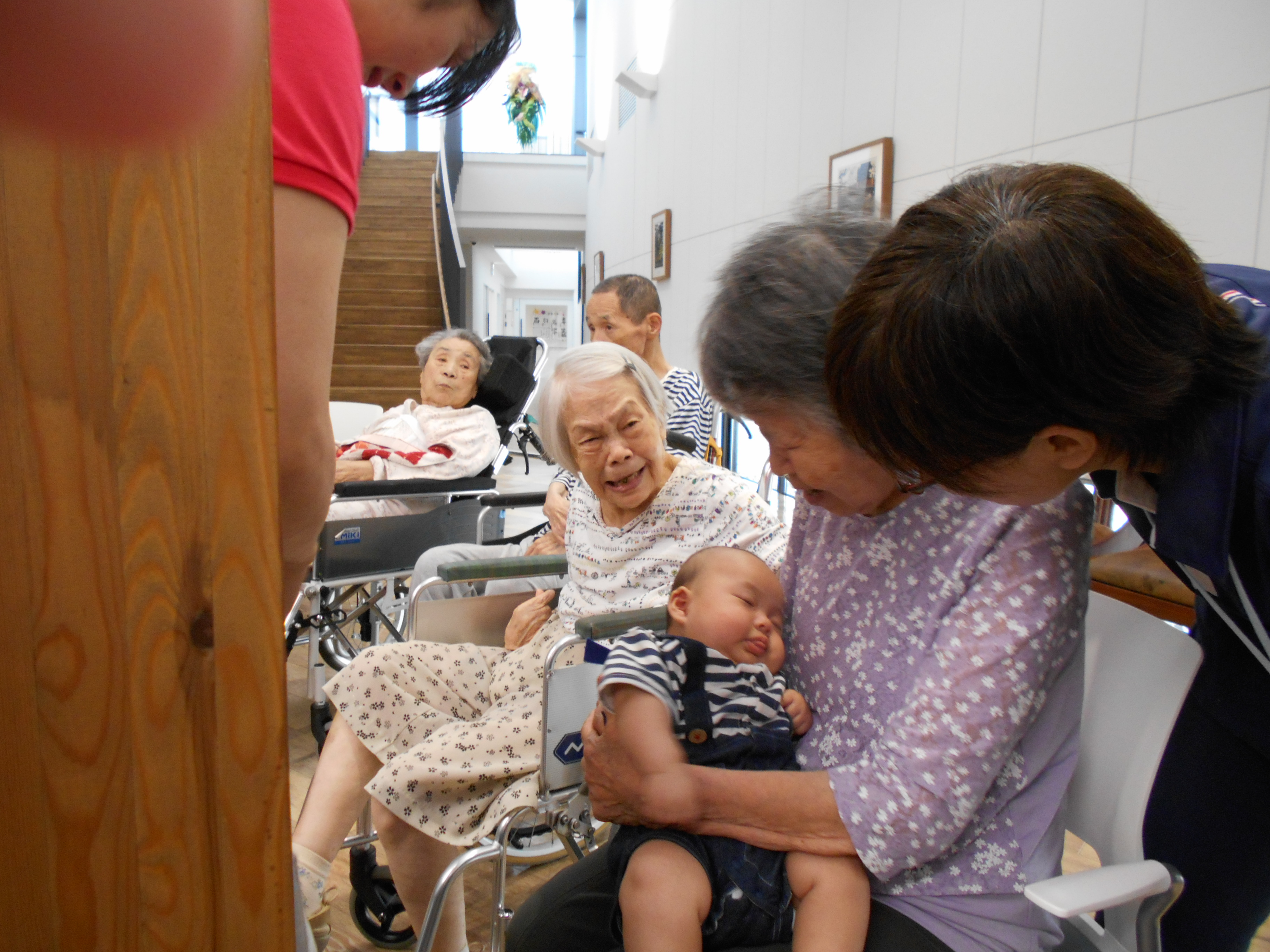赤ちゃんからたくさんの幸せをいただき、たくさんの笑みがこぼれます。 最高104歳の年の差の中で、楽しいひとときを過ごす事ができました。