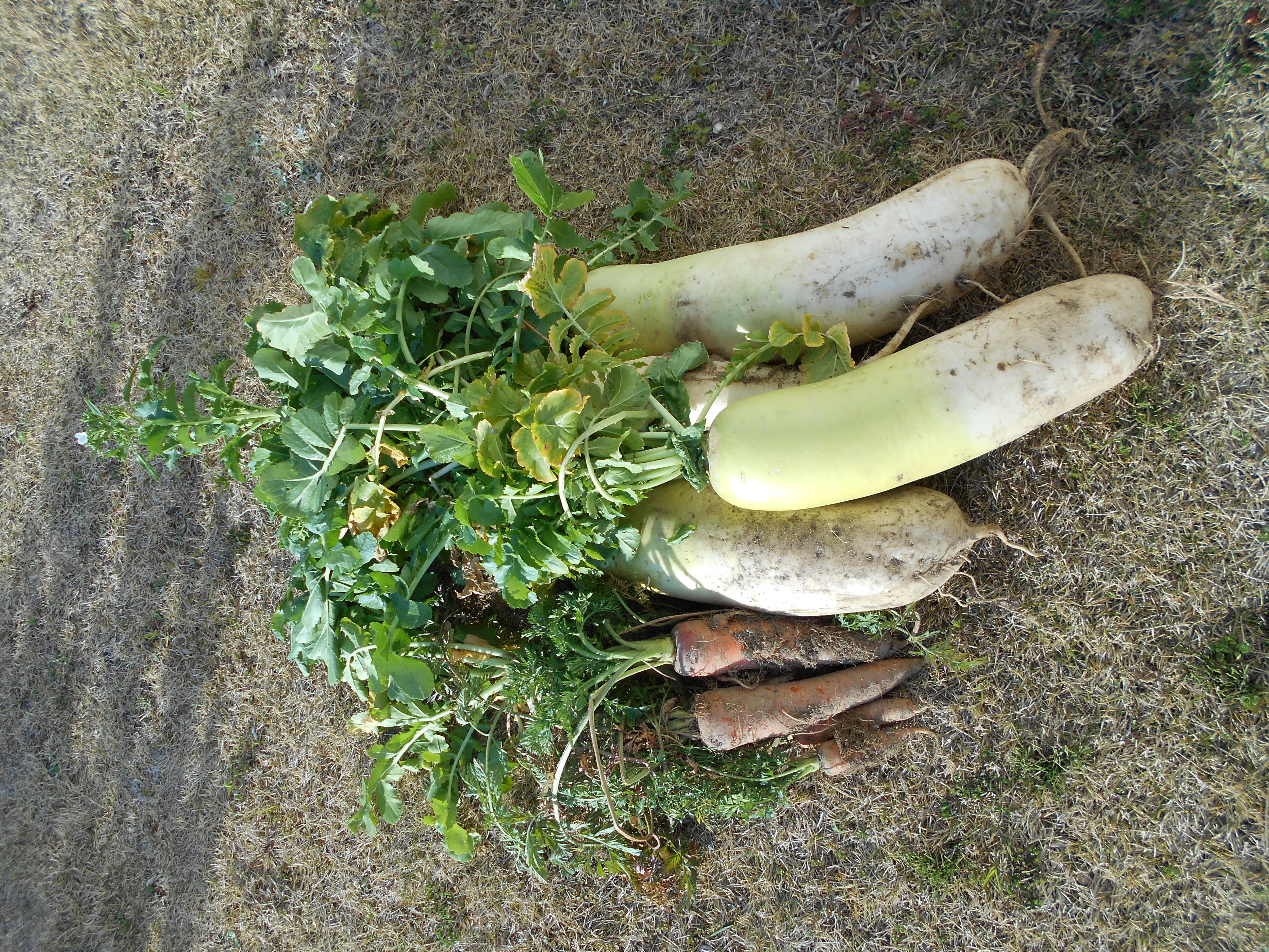 3/5(木)、大きく育った、大根と人参を収穫しました!!
