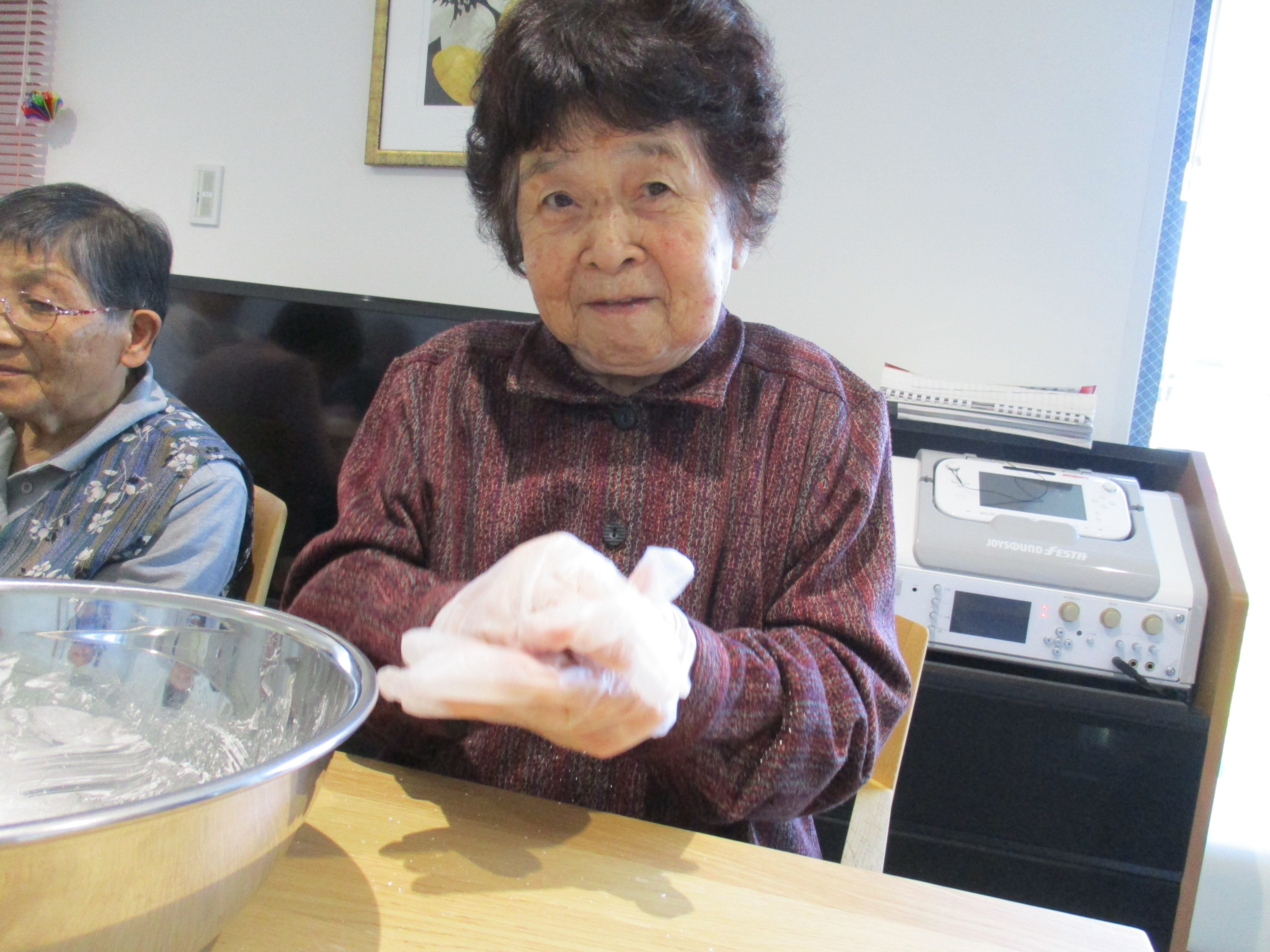 「もちもちしていておいしいわね」「おかわり!!」大好評です。職員も一緒に味見させていただきました。